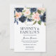 Navy Blue Blush Pink Floral 70th Birthday Party Invitation