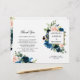 Navy Blue Blush Pink Floral Folded Wedding Program