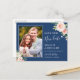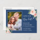 Save Our New Date Navy Blue Blush Pink Floral Photo | Change the Date Postcard.