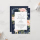Navy Blue & Blush Pink Floral Wedding Fall Invitation