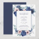 An elegant, watercolor navy blue and blush pink floral rose and foliage design Wedding Invitation with a dark blue colour on the back of the card. This classy and stylish card is ready for you to customise with fonts of your choice or leave as shown here and add your details for your special day.