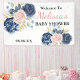 Navy Blue Blush Pink Florals Welcome Backdrop Banner