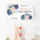 Custom welcome sign , backdrop banner in navy blue blue and blush pink floral. A great backdrop for baby shower, birthdays, bridal shower. Easily customisable, change colours, wordings, fonts and make it uniquely yours. Visit our navy blue and blush collection for everything you need to throw a splashy party. Invitations, thank you cards, favour box, posters and more.