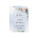 Design features an elegant watercolor floral wreath decorated with navy blue and blush pink roses, eucalyptus greenery. Design also features a a modern font - text layout. A matching floral arrangement is added to the back to carry over the overall theme.
