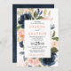 Navy Blue Blush Pink Rose Boho Geometric Wedding Invitation