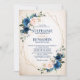 Navy Blue Blush Pink Rose Boho Geometric Wedding Invitation