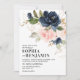Navy Blue Blush Pink Rose Boho Geometric Wedding Invitation