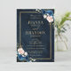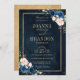 Beautiful floral boho modern geometric wedding invitation features hand-painted watercolor floral graphics / roses in rich tones of navy blue and blush pink / peach on watercolor navy blue background. Please contact me for any help in customisation or if you need any other product with this design.