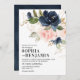 Navy Blue Blush Pink Rose Boho Geometric Wedding Invitation