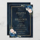 Navy Blue Blush Pink Rose Boho Geometric Wedding Invitation