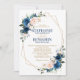 Navy Blue Blush Pink Rose Boho Geometric Wedding Invitation