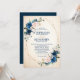 Navy Blue Blush Pink Rose Boho Geometric Wedding Invitation