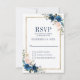 Beautiful floral boho modern geometric wedding RSVP card features hand-painted watercolor floral graphics / roses in rich tones of navy blue and blush pink with gold frame. Please contact me for any help in customisation or if you need any other product with this design.