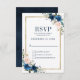 Navy Blue Blush Pink Rose Boho Geometric Wedding RSVP Card