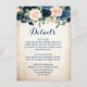 Navy Blue Blush Pink Rose Boho Wedding Details Enclosure Card