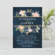 Navy Blue Blush Pink Rose Boho Wedding Invitation