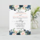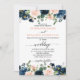 Navy Blue Blush Pink Rose Boho Wedding Invitation