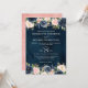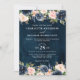 Navy Blue Blush Pink Rose Boho Wedding Invitation