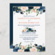 Navy Blue Blush Pink Rose Boho Wedding Invitation