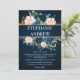 Navy Blue Blush Pink Rose Boho Wedding Invitation