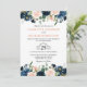 Navy Blue Blush Pink Rose Boho Wedding Invitation
