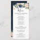 Navy Blue Blush Pink Rose Boho Wedding Menu