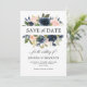 Navy Blue Blush Pink Rose Boho Wedding Save The Date