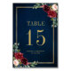 Navy Blue Blush Pink Rose Botanical Table Number