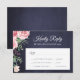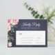 Navy blue blush pink rose chic wedding RSVP card