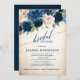 Navy Blue Blush Pink Rose Rustic Bridal Shower Invitation