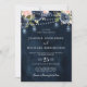 Beautiful floral boho wedding invitation features hand-painted watercolor floral graphics / roses in rich tones of navy blue and blush pink / peach and String lights with mason jars. Please contact me for any help in customisation or if you need any other product with this design.