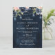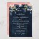 Navy Blue Blush Pink Rose String Lights Wedding Invitation