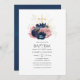 Navy Blue & Blush Pink Vintage Roses Baptism Invitation