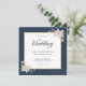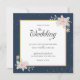 The elegant botanical wedding invitation design features pink peony themed watercolor flowers on a navy blue background plus a sophisticated set of fonts. View the collection link on this page for more inspiration.