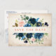 Navy Blue Blush Rose Rustic Boho Save the Date Announcement Postcard