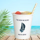 Customise this Blue Boat Paper Cup and add a Chic Touch to your Family Beach House Party. The Navy Sailing Boat against a Crisp, White background is ideal for an Elegant, Nautical Themed Beach Housewarming Party or Picnic.