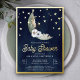 Navy Blue Boho Floral Moon Stars Baby Shower Gold