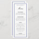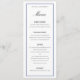 Elegant Wedding Menu, flat card with editable title and text. Navy blue border is editable in colour and thickness from a computer.