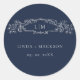 Navy Blue botanical crest monogram wedding Classic Round Sticker
