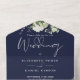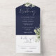 Navy Blue Botanical Greenery Monogram Wedding All In One Invitation