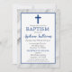 A grey marble background with a navy blue accent frame and cross provide the background for this Baptism invitation. Easily editable for a Christening, Communion, or Confirmation. The cross can also be removed if desired. Look for matching items in my shop!