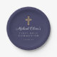 Navy Blue Boy Religious Cross First Communion Paper Plate