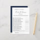 This bride and groom question game is ideal for a casual bridal shower, bachelorette party. The trendy romantic design combines traditional black text and a navy blue background on the back.