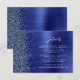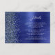 This elegant modern wedding details enclosure card features a navy blue brushed metal background image sprinkled with faux diamond glitter. Customize the white text, with the title "Details" in stylish handwriting script and the remaining text in sans serif font. The reverse side features a matching navy blue brushed metal and faux glitter design.