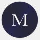 Navy Blue Brushed Metallic Monogram Initial Classic Round Sticker