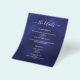 A modern, elegant wedding program/details/timeline. A navy blue coloured background. The blue colour is uneven. Personalise and add your names and wedding details. White coloured letters.