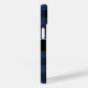 Black and Blue Buffalo Plaid Tartan Calligraphy Script Monogrammed Phone Case. Unique and trendy chequered tartan pattern in dark navy blue and black, with a custom monogram template and elegant calligraphy script name template in white. This stylish tartan pattern phone cover would make a thoughtful gift for mum, daughter, grandma, etc.