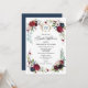 Navy Blue, Burgundy Bloom Watercolor Bridal Shower Invitation