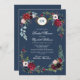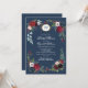 Navy Blue, Burgundy Bloom Watercolor Bridal Shower Invitation