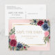 Navy Blue Burgundy Blush Pink Floral Save The Date Announcement Postcard